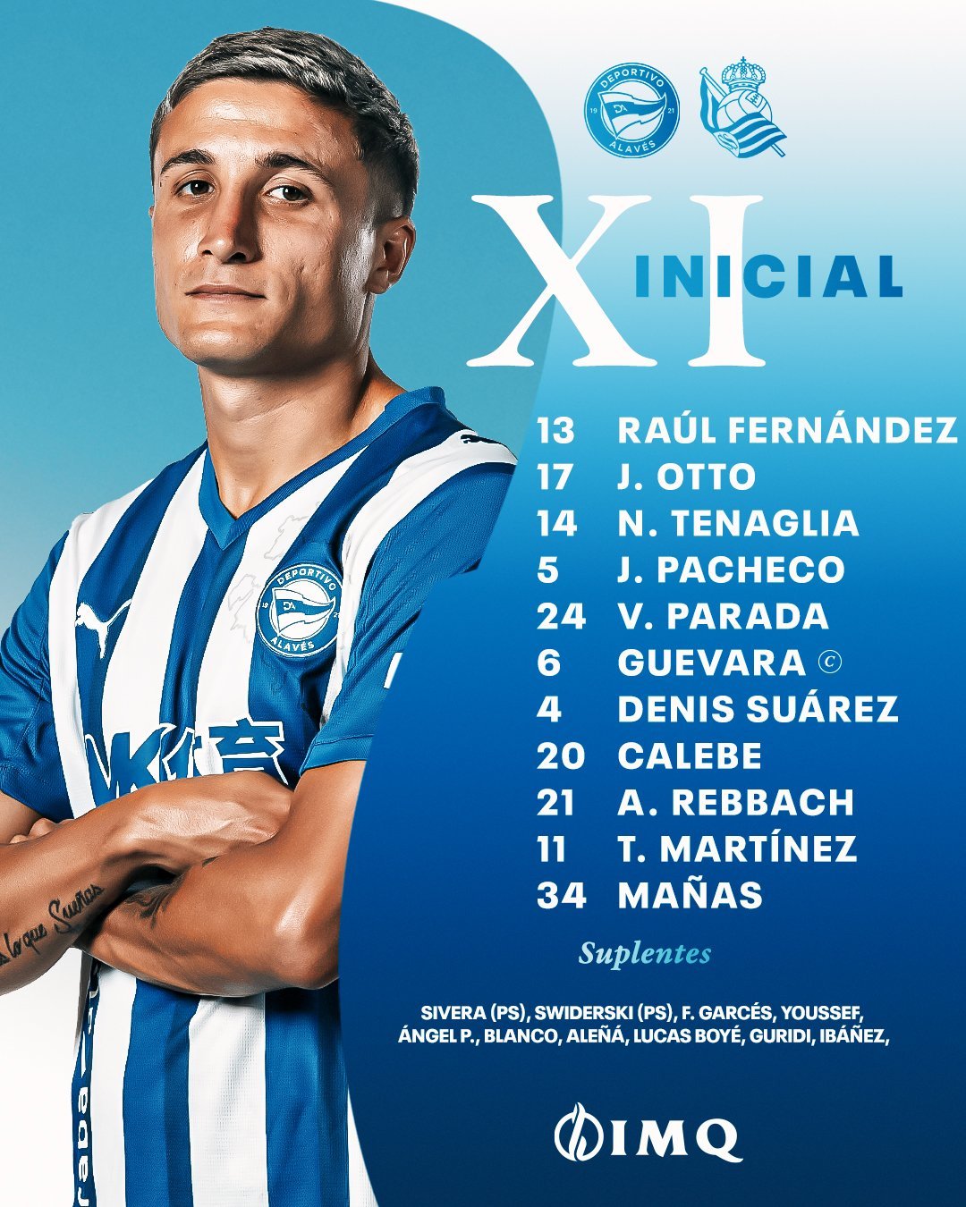 ¡Y once del Alavés! Sale Coudet de inicio con Raúl Fernández, Parada, Tenaglia, Pacheco, Jonny, Guevara, Denis Suárez, Calebe, Rebbach, Mañas y Toni Martínez.