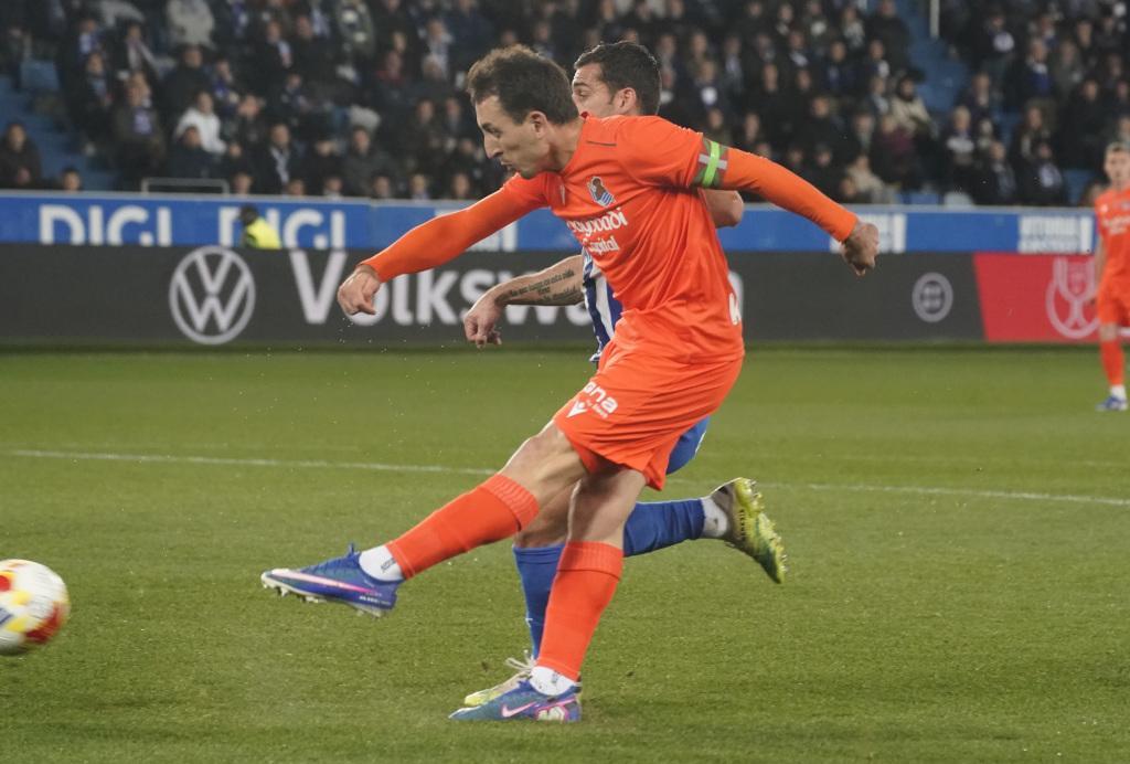 Armó el disparo Oyarzabal en la contra de la Real, tocó en Pacheco y se fue muy desviado.