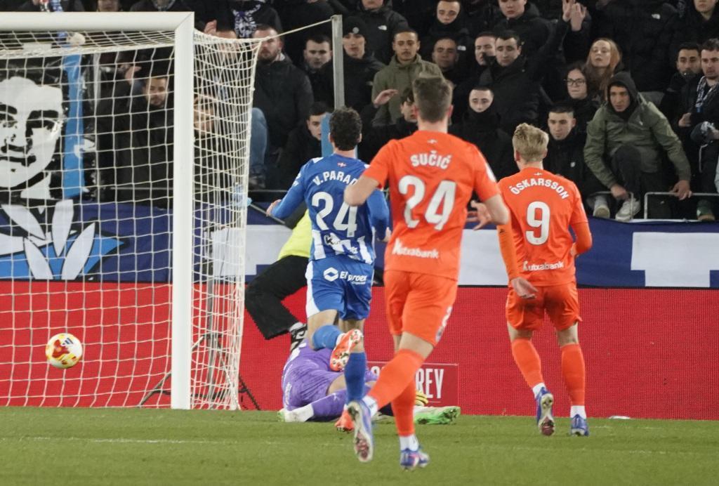 Perdió la Real en la salida y pudo meterse en un problema. No fue preciso el Alavés tras la recuperación y perdió una gran oportunidad de llegar hasta Remiro.